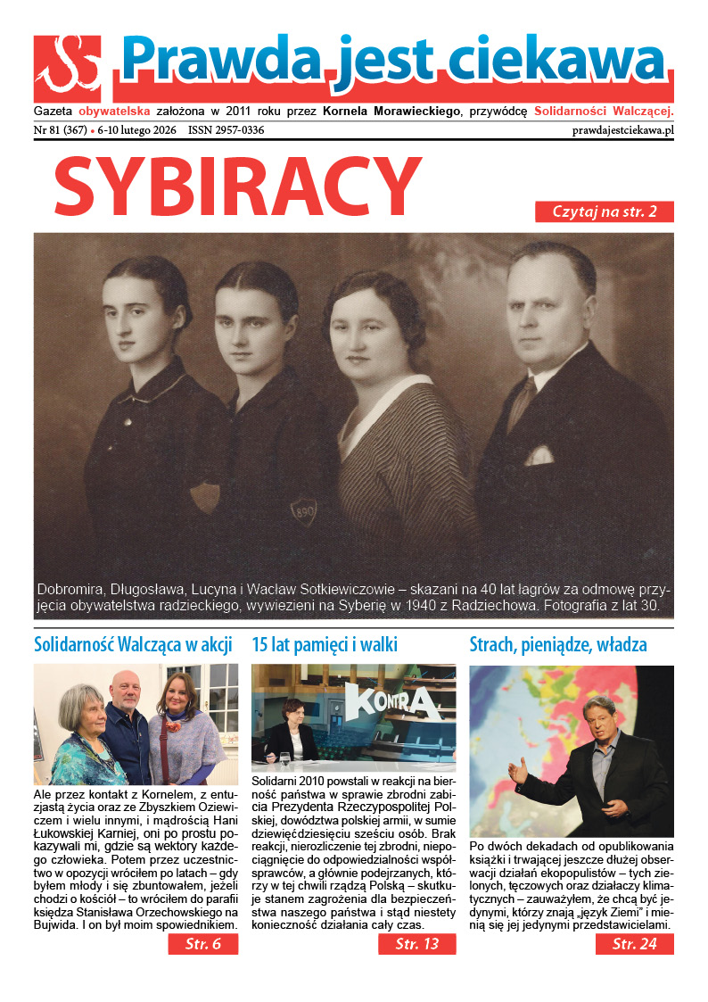 10 lutego 2026 Solidarni 2010 Ewa Stankiewicz, stojąca na czele ruchu Solidarni 2010, podsumowała 15 lat działalności inicjatywy, która skupia wokół siebie osoby poszukujące prawdy o katastrofie smoleńskiej z 10 kwietnia 2010 roku. Stankiewicz podkreśla, że lęk przed powtórzeniem się zbrodni jest uzasadniony, bo przez ostatnie 16 lat państwo zawiodło. Nierozliczenie tej zbrodni, niepociągnięcie do… Czytaj dalej 15 lat pamięci i walki o prawdę na temat katastrofy smoleńskiej