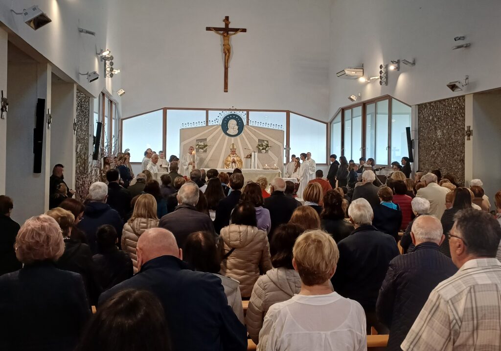 Następnie w gościnnej parafii Stella Maris w Bari Palese polscy pielgrzymi uczestniczyli w kolejnej Mszy Św. pod przewodnictwem księdza arcybiskupa. Poprzedziła ona poświęcenie parafialnej sali multimedialnej, której od kwietnia 2025 roku patronuje św. Jan Paweł II. Dlatego pierwszym spektaklem multimedialnym było widowisko o polskim papieżu: „Najbardziej lubił wtorki”. Premierę przygotowali włoscy parafianie z osobistym udziałem księdza proboszcza Antonio Eboli. Wybrane fragmenty z życia codziennego Karola Wojtyły – księdza, biskupa i papieża w udany sposób przybliżyły włoskiej publiczności zrozumienie polskiej rzeczywistości tamtych czasów. Publiczność i wzruszony ks. arcybiskup gratulowali aktorom udanego spektaklu.