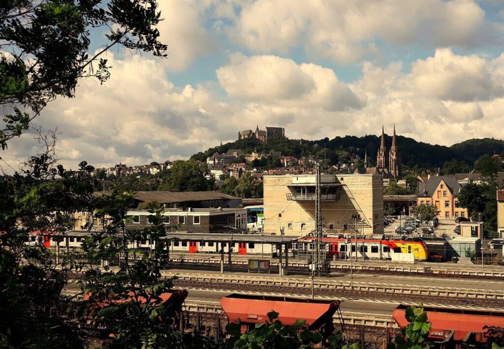 Poranek w Marburgu. To tu w zeszłym roku dotarliśmy w pieszej wędrówce do Santiago de Compostela. Dzisiaj wysiedliśmy z ostatniego pociągu na trasie z Guben, by kontynuować Drogę.