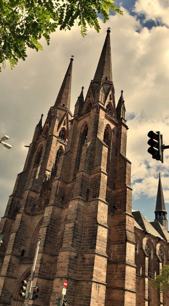 Poświęcając każdego roku 10 do 14 dni na pielgrzymowanie nie ma nadziei, że cel osiągnie się szybko, ale pełni energii ruszyliśmy przez miasto, jak każde na szlaku naszpikowane historią i zabytkami. Po nocy spędzonej w pociągach i na dworcach, tylko dzięki kawie znaleźliśmy siły, by znów podnieść głowę i spojrzeć na sięgające nieba wieże kościoła Elisabethkirche.