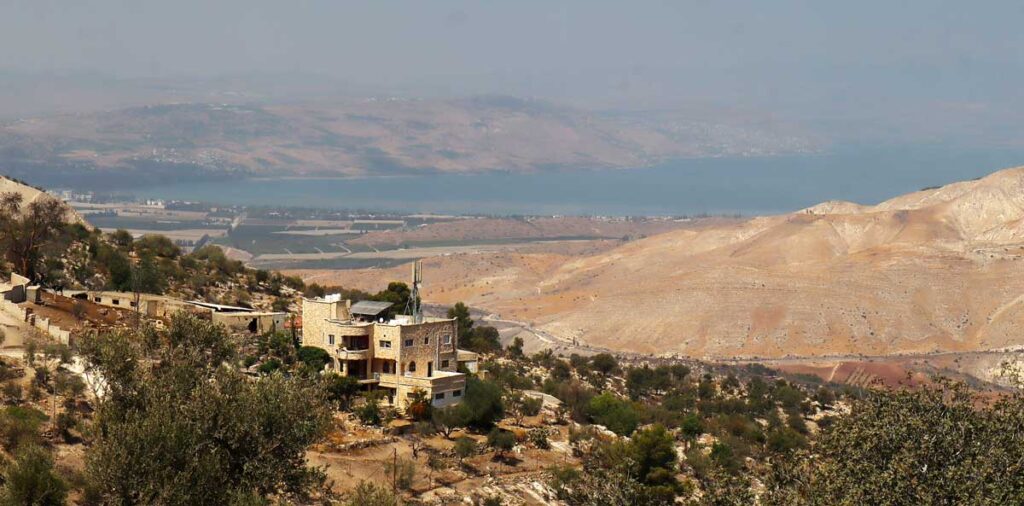 Jeszcze piękniejszy widok Ziemi Obiecanej oglądać można ze starożytnej Gadary (w pobliżu wioski Um-Quais). Jest oddalona zaledwie 7-8 km od Jeziora Galilejskiego. Ledwie majaczy na północnym zachodzie w odległości 30 km przeciwległy brzeg kojarzony z miejscem rodzinnym św. Piotra i powołania go przez Jezusa. Dalej rozciąga się zielona Galilea. W tej samej odległości, bezpośrednio na zachód położony jest Nazaret. Przy dobrej widoczności i stosownej aurze za wzgórzami Golan można ujrzeć odlegle o ponad 60 km śniegi masywu góry Hermon (2814 m n.p.m.). Od grudnia 2024 Izraelczycy zajęli całe zachodnie stoki masywu należące od 1949 do Syrii. Widać zabudowania najbliższego dużego miasta nad jeziorem –Tyberiady odległej od Gadary ok. 20 km.