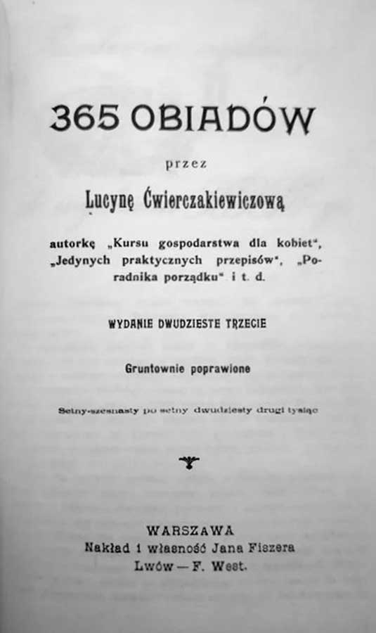 Przepisy Ćwierczakiewiczowej (bo tak faktycznie brzmiało jej nazwisko!) znakomicie łączyły tradycję z nowoczesnością. Stąd ogromny, jak na tamte czasy, sukces wydawniczy i finansowy jej poradników. „Żonom zawsze powtarzam, że smacznie przyrządzony obiad jest podstawą szczęścia domowego i dobrego humoru męża” – pisała autorka we wstępie do dwudziestego wydania słynnych „365 obiadów za 5 złotych”, które już w XIX wieku przekroczyły liczbę stu tysięcy sprzedanych egzemplarzy. Znawca przedmiotu Jan Kalkowski, w znakomitym wstępie do współczesnych wydań tej książki, stawia kropkę nad i: „Nakładami przewyższała klasyków z Mickiewiczem i Słowackim, a honorariami «Potop» Sienkiewicza czy «Faraona» Prusa”!