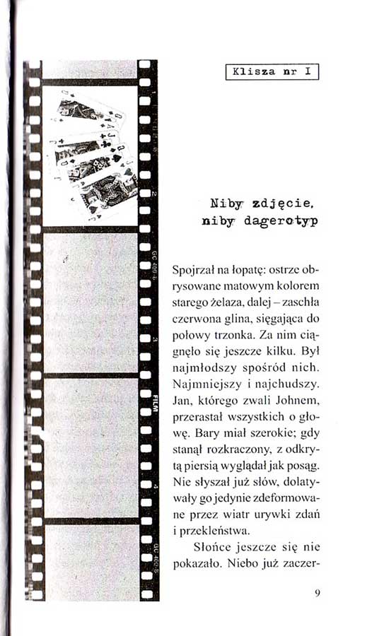 d) Owe klisze mają dołączone przy tytule kadry niby taśmy zdjęciowej z odpowiednim obrazem w pozytywie.
