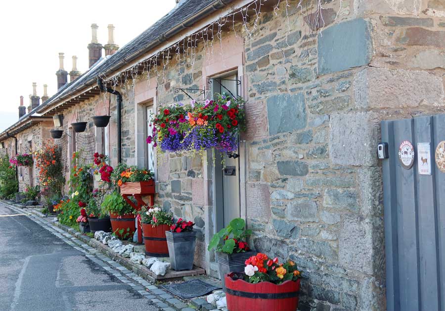 Najpierw odwiedziłyśmy malowniczą wioskę Luss nad jeziorem Loch Lomond. Miejsce piękne i bardzo spokojne. Szczególnie urzekły nas ukwiecone kamienne domki. W Luss znajduje się także niewielki kościół pochodzący z XIX wieku. Otaczający go cmentarz jest znacznie starszy, a znajdujący się na nim grób wikinga datowany jest nawet na XI wiek!