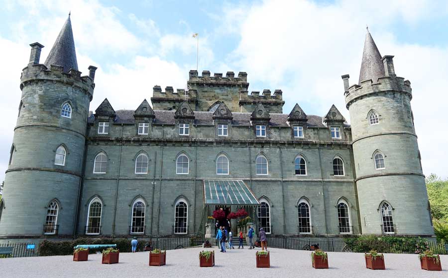 Kolejną miejscowością na naszej trasie była Inveraray znajdująca się na zachodnim brzegu jeziora Loch Fyne. Nieopodal Inveraray obejrzałyśmy okazały XVIII-wieczny zamek, siedzibę księcia Argyll, naczelnika klanu Campbell, jednego z największych szkockich klanów.