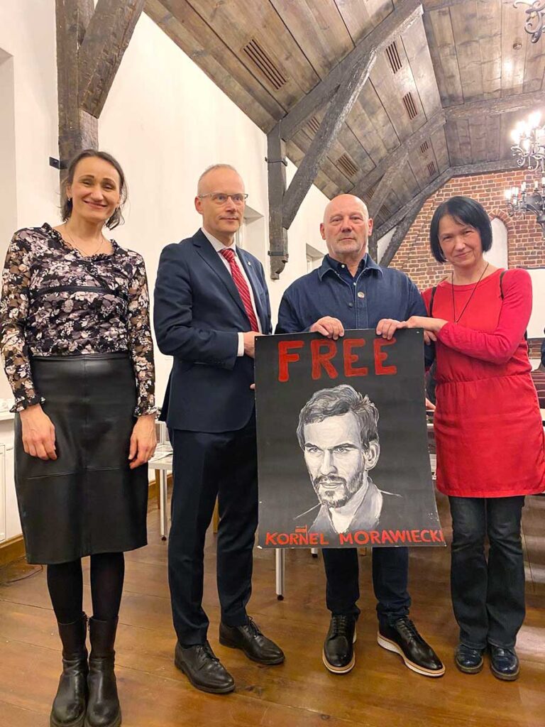 Darek Olszewski: Ja myślę, że wpływ Kornela Morawieckiego to nie jest czas przeszły. To jest teraźniejszość mojego życia. Często zaglądam do jakichś cytatów, zdjęć. Sam namalowałem tam portret z tyłu, co jest i stałem z nim w Nowym Jorku na ulicy, żeby Kornela uwolnili. Mieliśmy tam cały komitet.