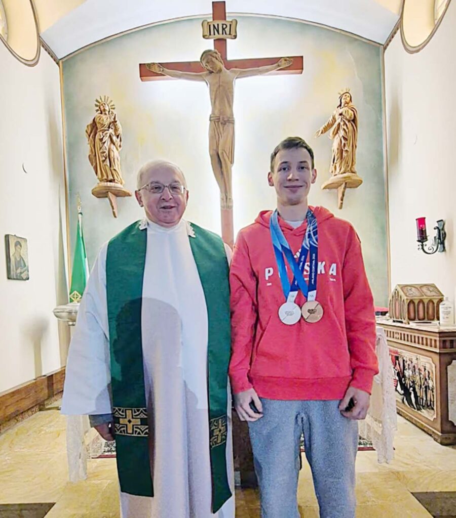 Kacper Tomasiak – nasz multimedalista XXV ZIO 2026 znany jest nie tylko ze swojego talentu sportowego, ale także z otwartości w manifestowaniu swojej wiary katolickiej. Podobnie jak wielu polskich skoczków (np. Kamil Stoch czy Dawid Kubacki) regularnie żegna się przed wejściem na belkę startową lub tuż przed samym odbiciem. Dla niego jest to akt zawierzenia się Bogu i prośba o opiekę podczas niebezpiecznego lotu, a nie traktowanie wiary jako „talizman” mający zapewnić sukces.